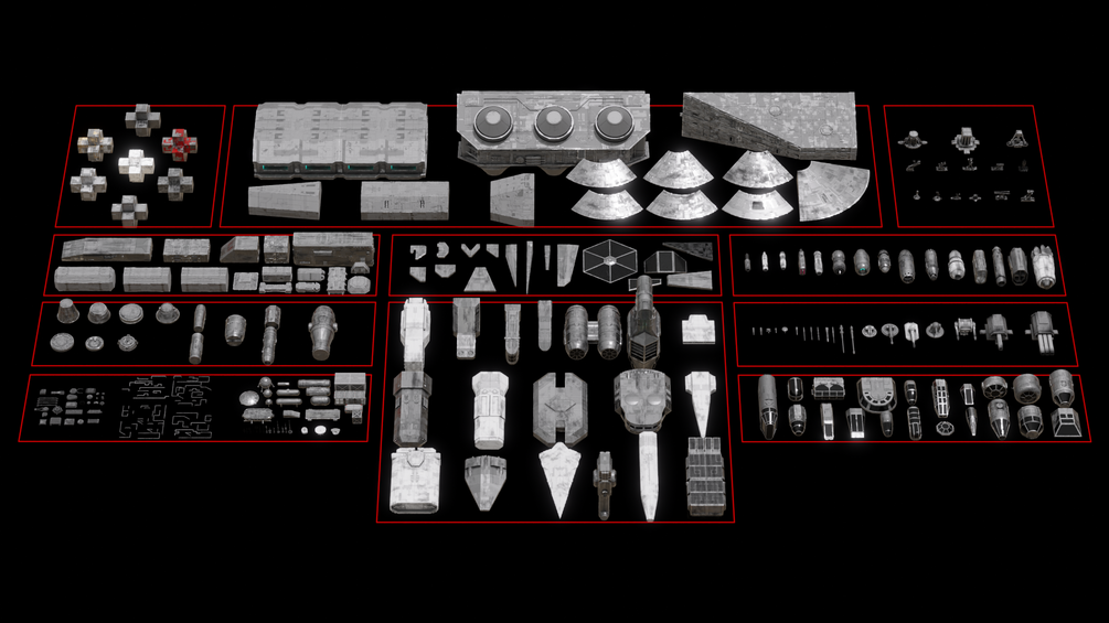 250+ Spaceship pieces and accessories with PBR textures and procedurals