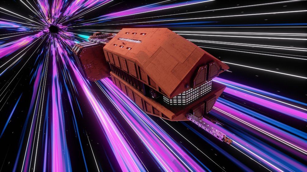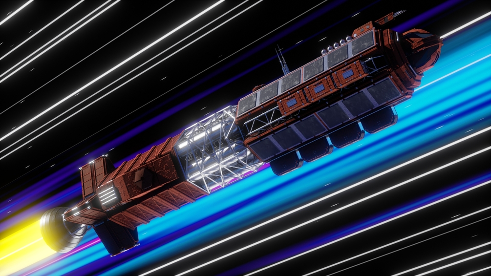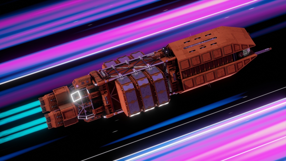 Modular ship pieces, procedural and texture based materials, procedural warp tunnel and thrust.